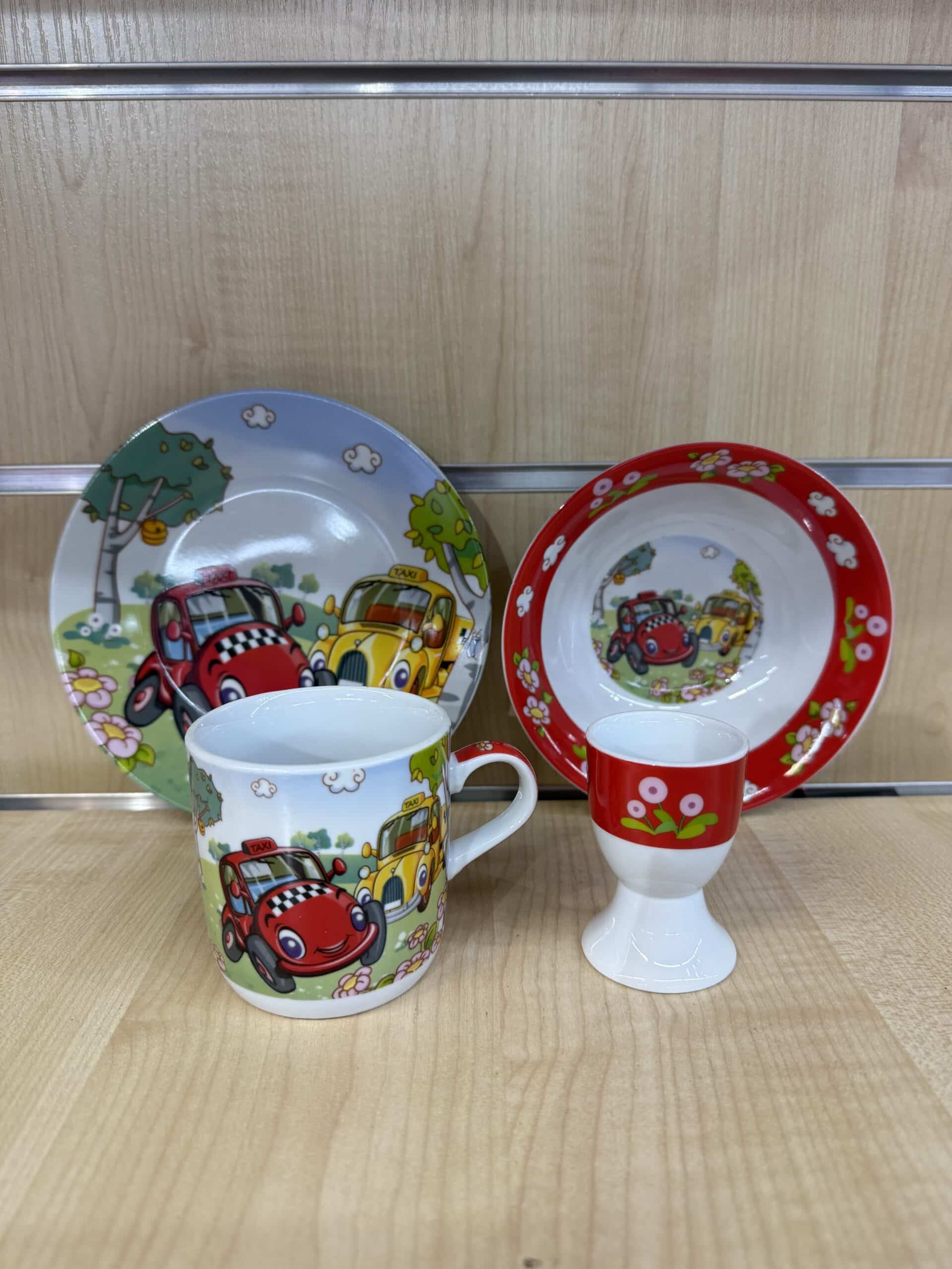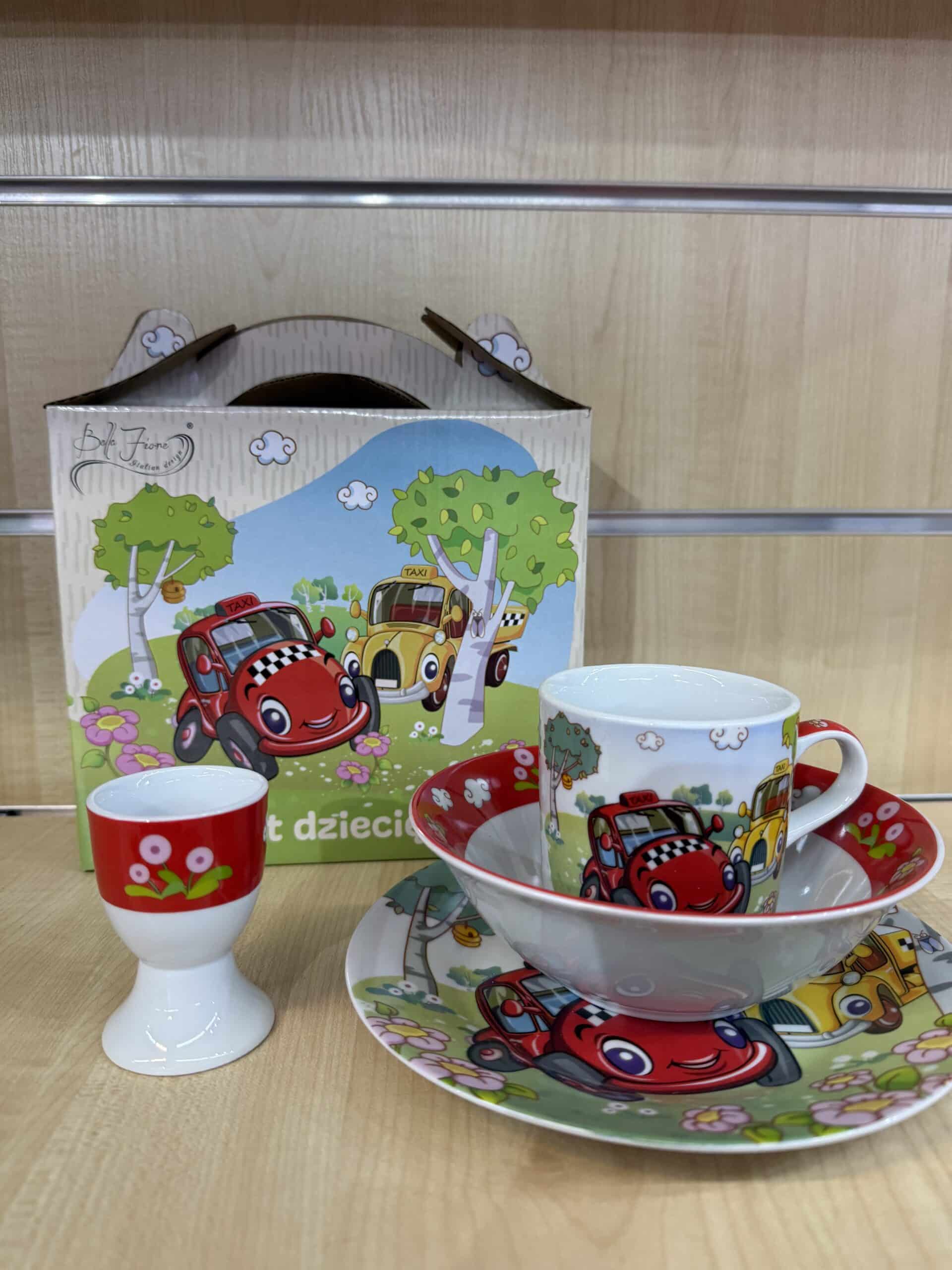 Komplet dziecięcy 4 elementowy porcelanowy Samochodzik