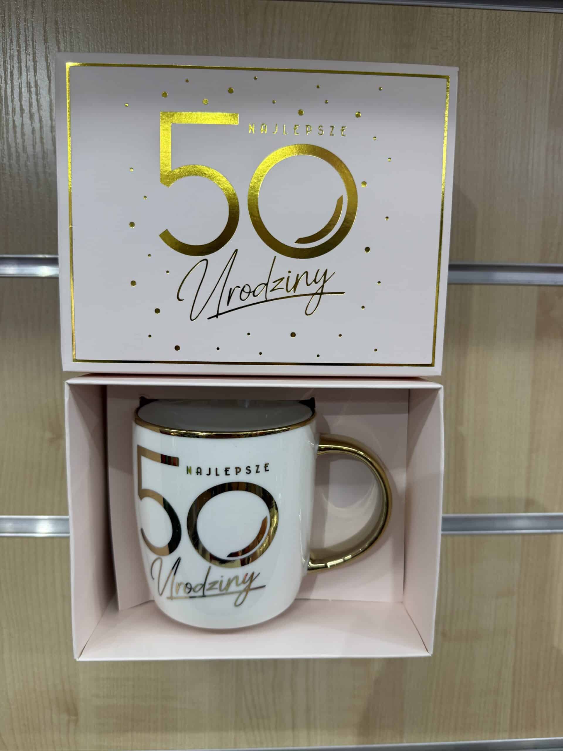 Elegancki kubek ceramiczny stworzony z myślą o jubileuszu 50. urodzin. Biała powierzchnia ozdobiona złotym napisem „50 Urodziny” oraz połyskujący złoty uchwyt nadają mu wyjątkowego, luksusowego charakteru. Zapakowany w różowe, ozdobne pudełko, stanowi piękny i praktyczny prezent, który będzie miłym wspomnieniem tego wyjątkowego dnia.