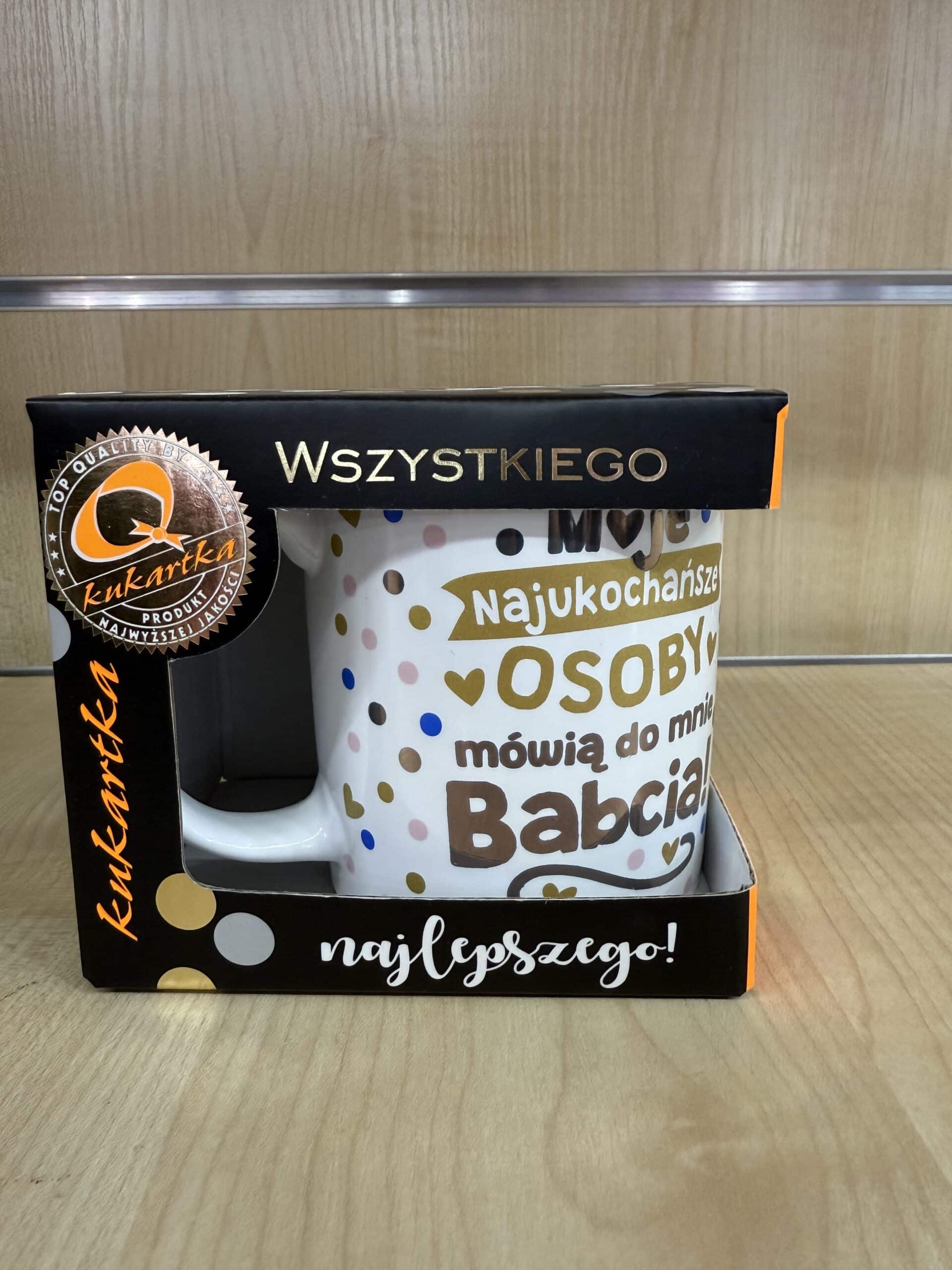 • Design: Kubek ozdobiony napisem „Najukochańsze Osoby Mówią do Mnie Babcia” z delikatnymi złotymi detalami.