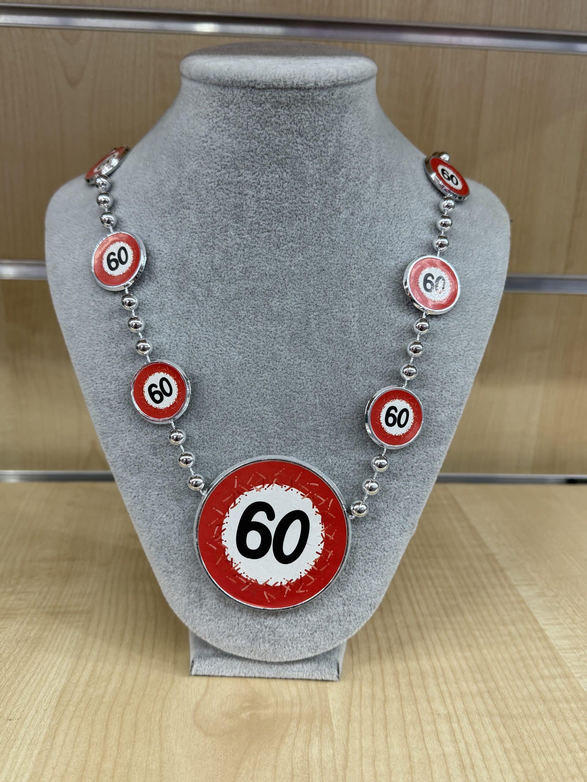 „Naszyjnik na 60-tkę” – bo sześćdziesiątka to idealny moment, by świętować życie na pełnych obrotach! ? Zabawny, stylowy i wyjątkowy dodatek na urodzinową imprezę. ? Ozdobiony zawieszkami w kształcie znaków drogowych z liczbą 60 – dla jubilata, który wie, że życie po sześćdziesiątce to prawdziwa jazda bez ograniczeń! Idealny jako prezent lub urodzinowy akcent, który rozbawi każdego gościa.