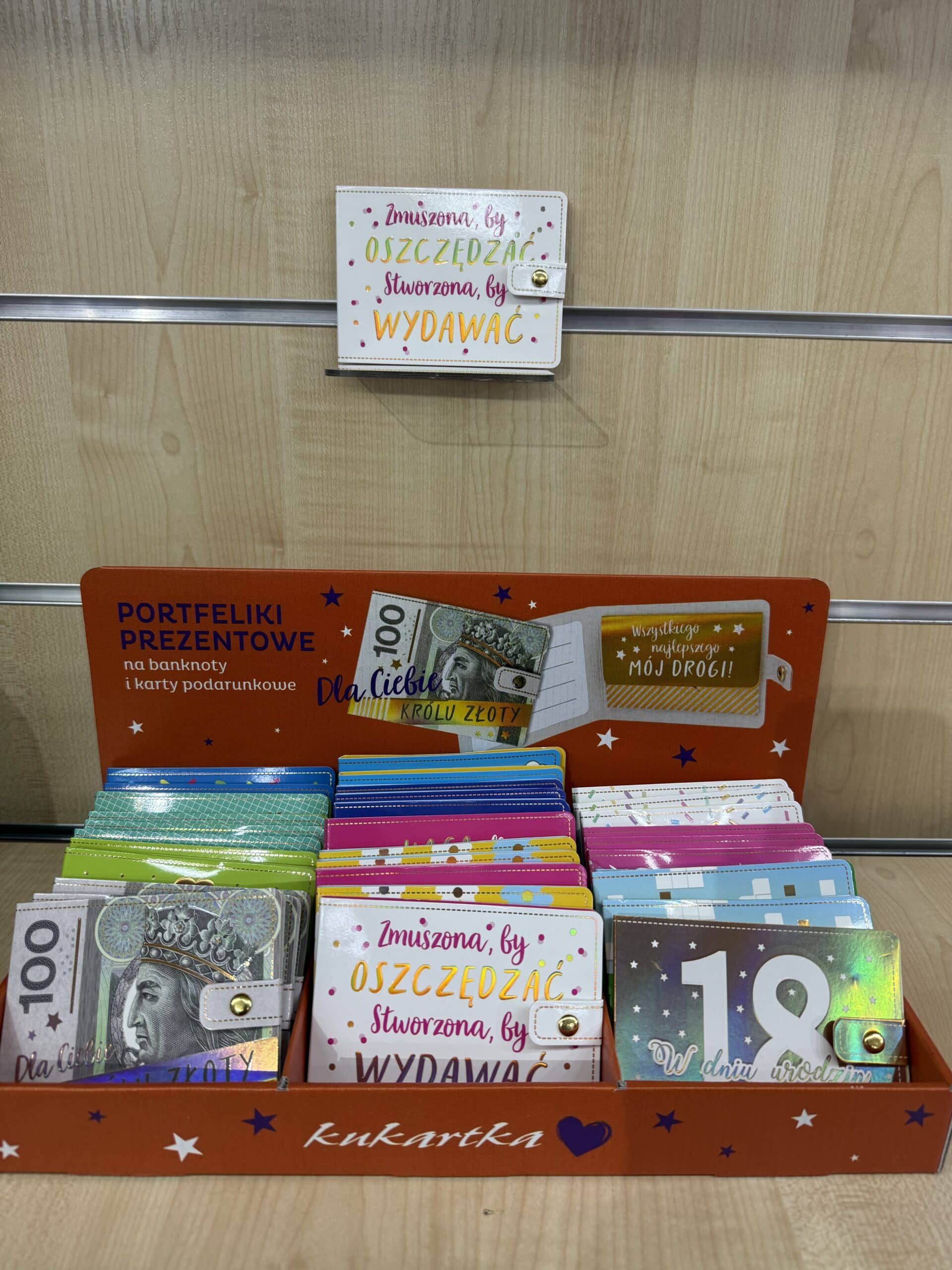 Stylowe portfele prezentowe stworzone z myślą o podarowaniu pieniędzy w wyjątkowy i elegancki sposób. Dostępne w różnych kolorach i wzorach – od klasycznych po okolicznościowe, np. na 18. urodziny. Stanowią praktyczną i efektowną alternatywę dla tradycyjnej koperty, dzięki czemu wręczany prezent pieniężny nabiera uroczystego charakteru.
