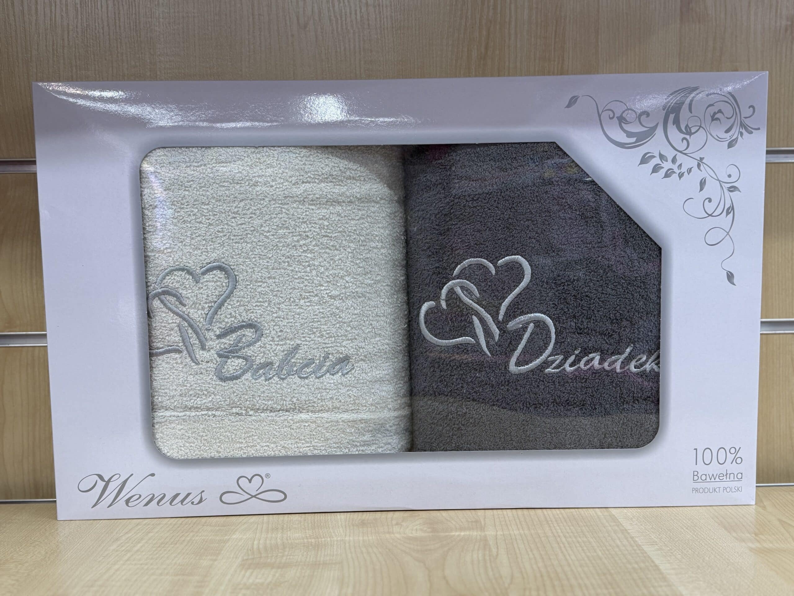 Komplet eleganckich ręczników w pudełku, idealny prezent dla Babci i Dziadka. Wykonane z wysokogatunkowej bawełny, zapewniają wyjątkową miękkość i trwałość. Zestaw zawiera dwa ręczniki o wymiarach 70×140 cm, ozdobione subtelnymi napisami, które podkreślają wyjątkowość obdarowanych osób. Produkt polski, zapakowany w estetyczne kartonowe opakowanie, które doskonale nadaje się na każdą okazję.