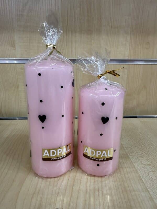 Świeca ozdobna różowa w serduszka – różne rozmiary