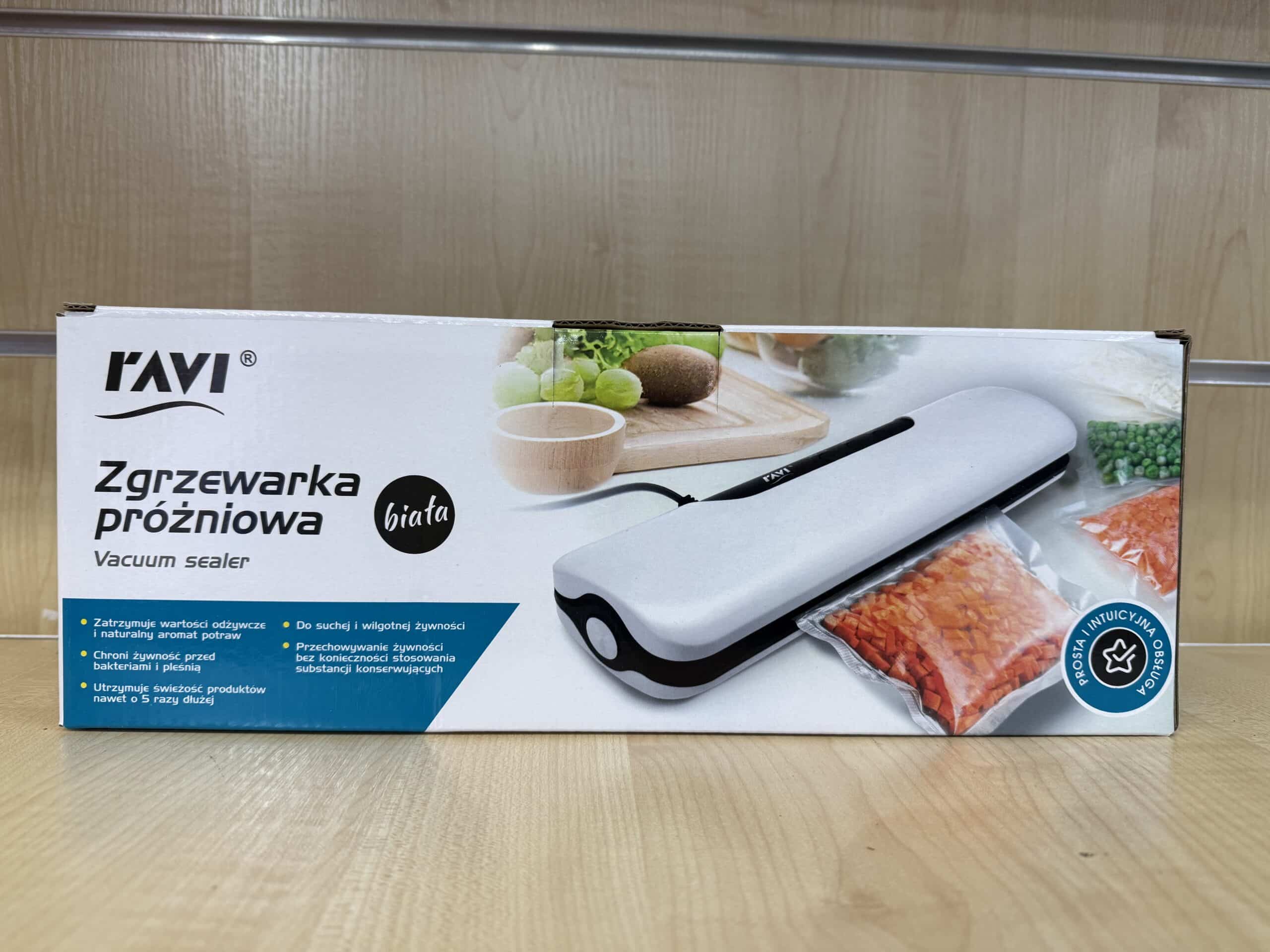 Zgrzewarka próżniowa RAVI (biała) to praktyczne urządzenie, które pozwala przedłużyć świeżość żywności nawet do 5 razy dłużej. Idealna do przechowywania produktów suchych i wilgotnych, pomaga zachować ich wartości odżywcze oraz naturalny aromat. Chroni jedzenie przed bakteriami, wilgocią i pleśnią, dzięki czemu świetnie sprawdzi się w każdej kuchni — zarówno domowej, jak i w małej gastronomii.