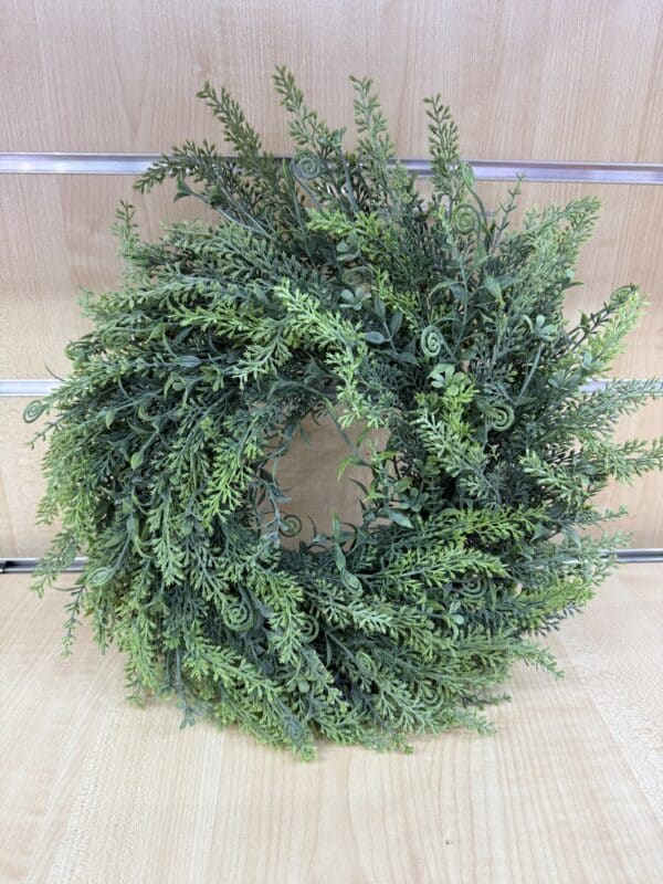 Efektowny wianek dekoracyjny wykonany ze sztucznej zieleni, o średnicy 37 cm. Idealny jako ozdoba drzwi, ściany lub stołu – pasuje do każdego stylu wnętrza. Świetnie sprawdzi się przez cały rok, a po dodaniu ozdób może stać się świąteczną lub sezonową dekoracją. Trwały, estetyczny i gotowy do zawieszenia.